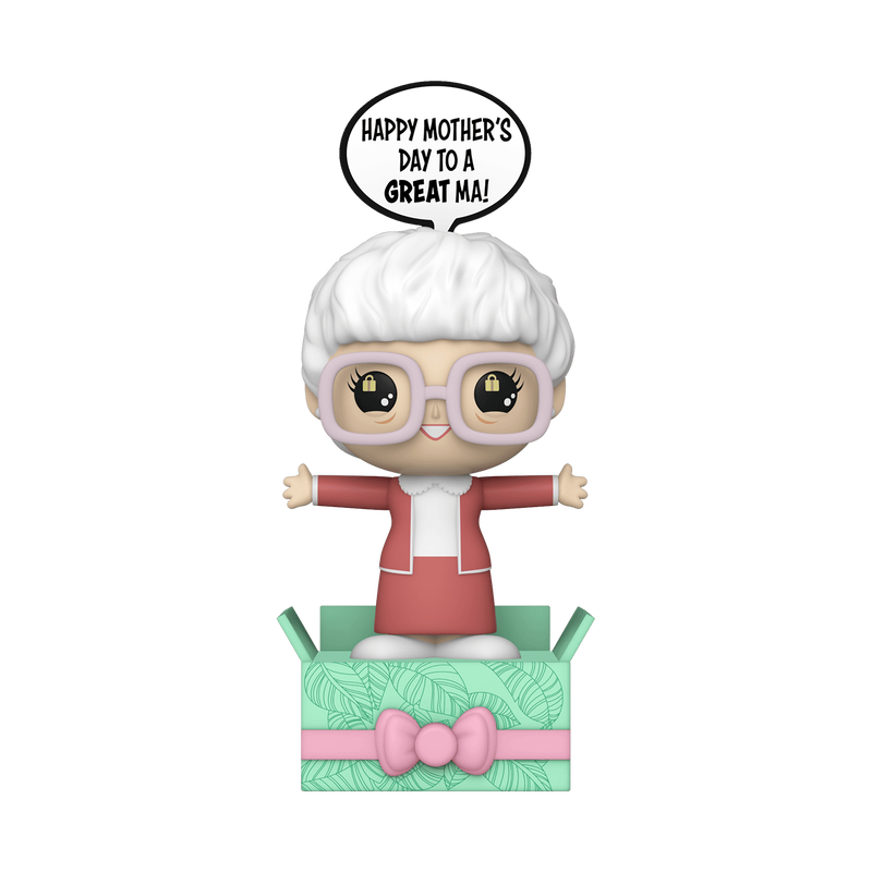 Surprise a friend or loved one with open arms and a pop-up greeting with Popsies, the new collectible greeting by Funko! Press the center of the bow and the special message appears above Sophia from The Golden Girls as she holds her arms out wide. You can even write who it’s from and for with a permanent marker on the present’s label. Share a sentiment and a smile with an awesome Golden Girls Sophia Popsies! Vinyl collectible greeting is approximately 4.75-inches tall.