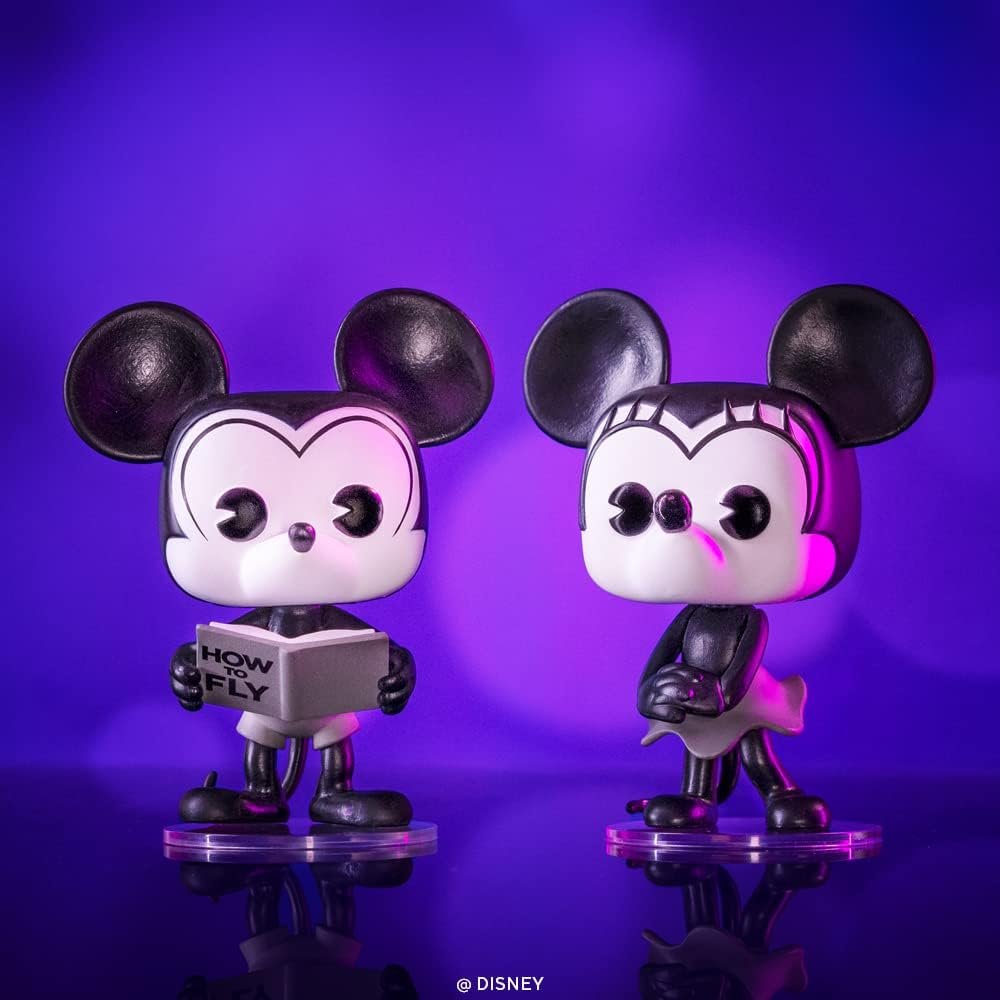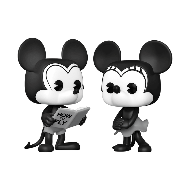 Get your boarding passes ready and take flight with Pop! Mickey Mouse & Pop! Minnie Mouse! This 2022 D23 Expo exclusive 2-Pack features Pop! Mickey Mouse & Pop! Minnie Mouse in black and white, just as they appeared in their adventures in the 1928 Walt Disney cartoon Plane Crazy. These figures were also inspired by the original “I Flew on the ‘Mouse’” certificate. Spread your wings and expand your Disney set. Vinyl figures are approximately 4-inches tall.
