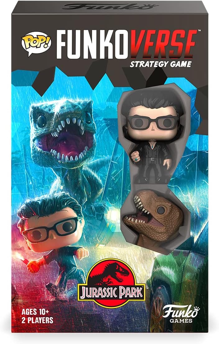 - Includes 2 playable maps, as well as 2 exclusive Funkoverse Pop! Game figures, Dr. Ian Malcolm and T-Rex
